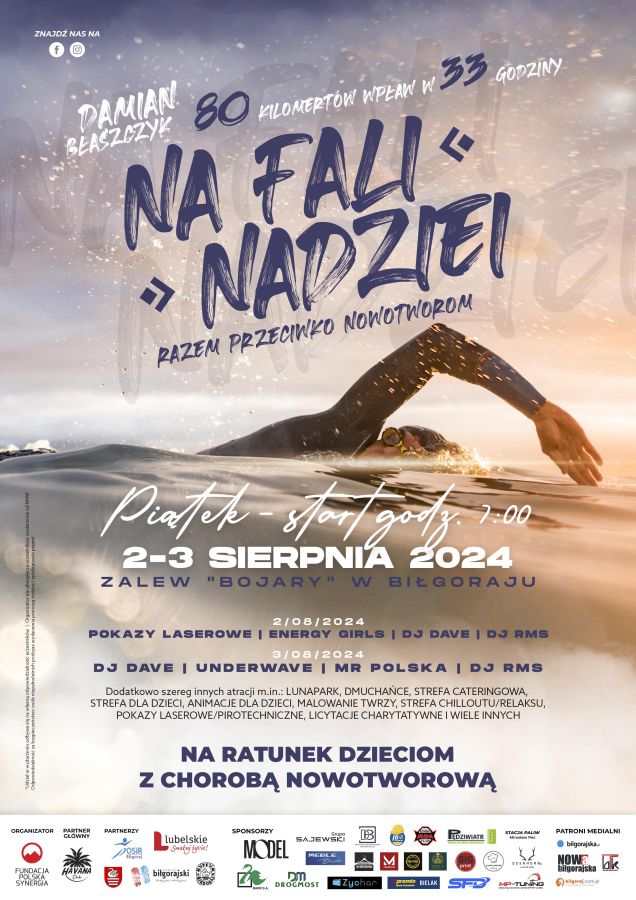 Wspieramy wydarzenie charytatywne ” Na Fali Nadziei- Razem Przeciwko Nowotworom”. Zapraszamy serdecznie nad Zalew Bojary w Biłgoraju. Zawodnik Klubu Sportowego