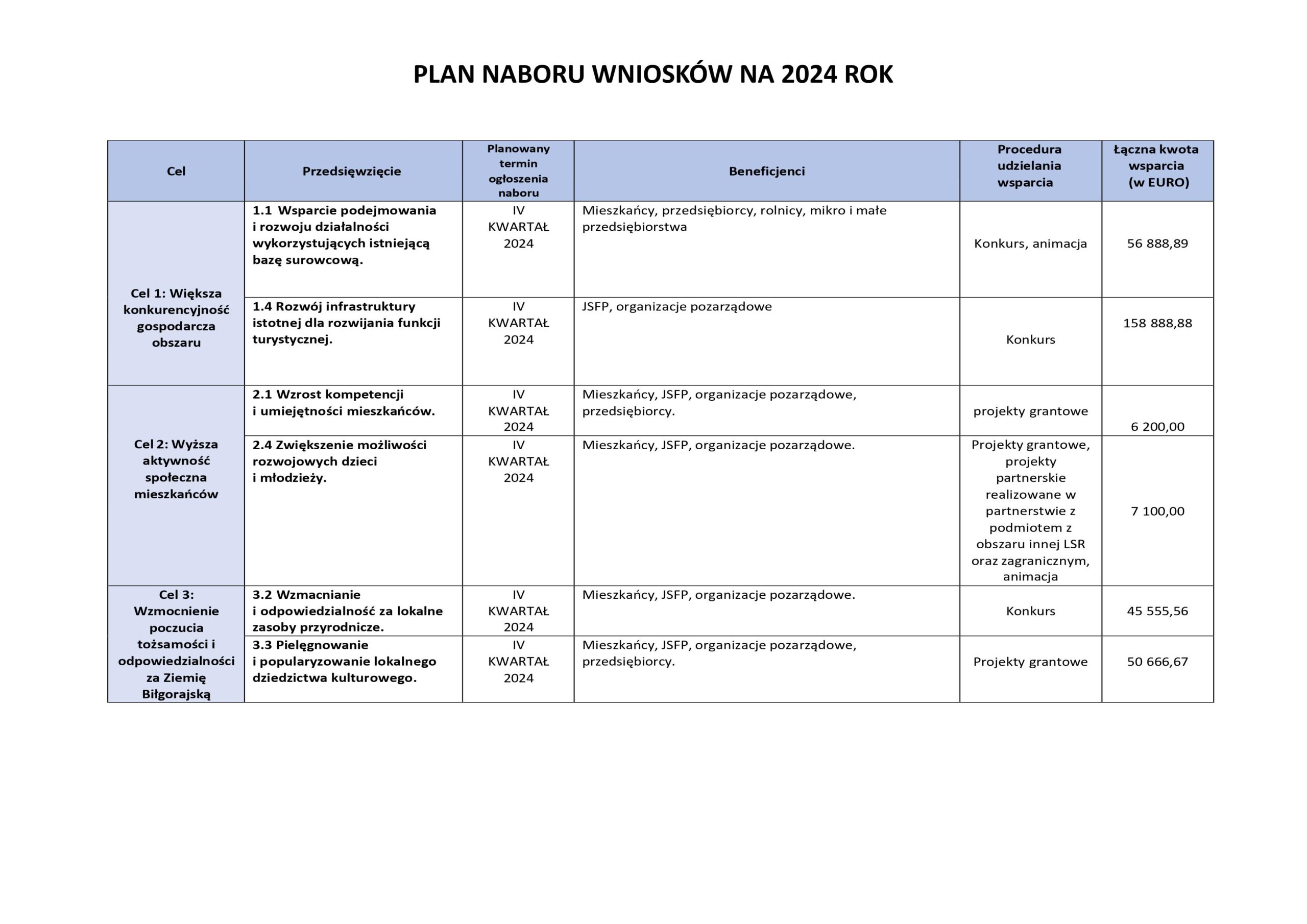 PLAN NABORU WNIOSKÓW NA 2024 ROK